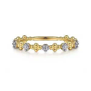 14K White-Yellow Gold Bujukan Bead Cuff Bracelet with Diamond Stations