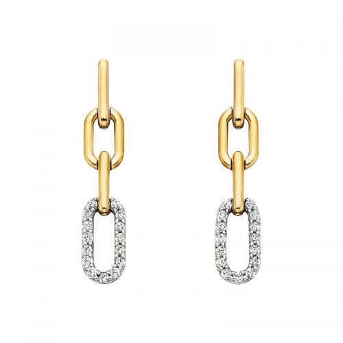 10k Yellow Gold Paperclip Diamond Drop Earrings