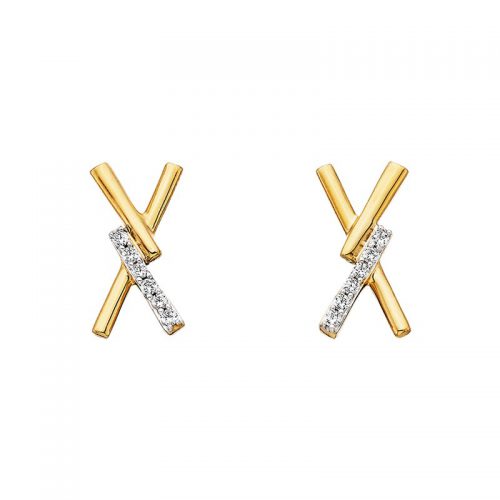 Intersecting beams of gold part to reveal a glittering diamond in these refined hoops. Total diamond weight is .05ct.
