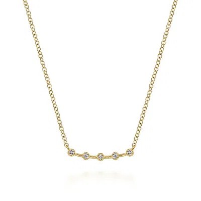 Curving, overlapping strands of polished 14k yellow gold and sparkling 0.08ct diamonds form an abstract heart design in this romantic fashion necklace. Carry your love with you everywhere you go thanks to this versatile keepsake necklace.